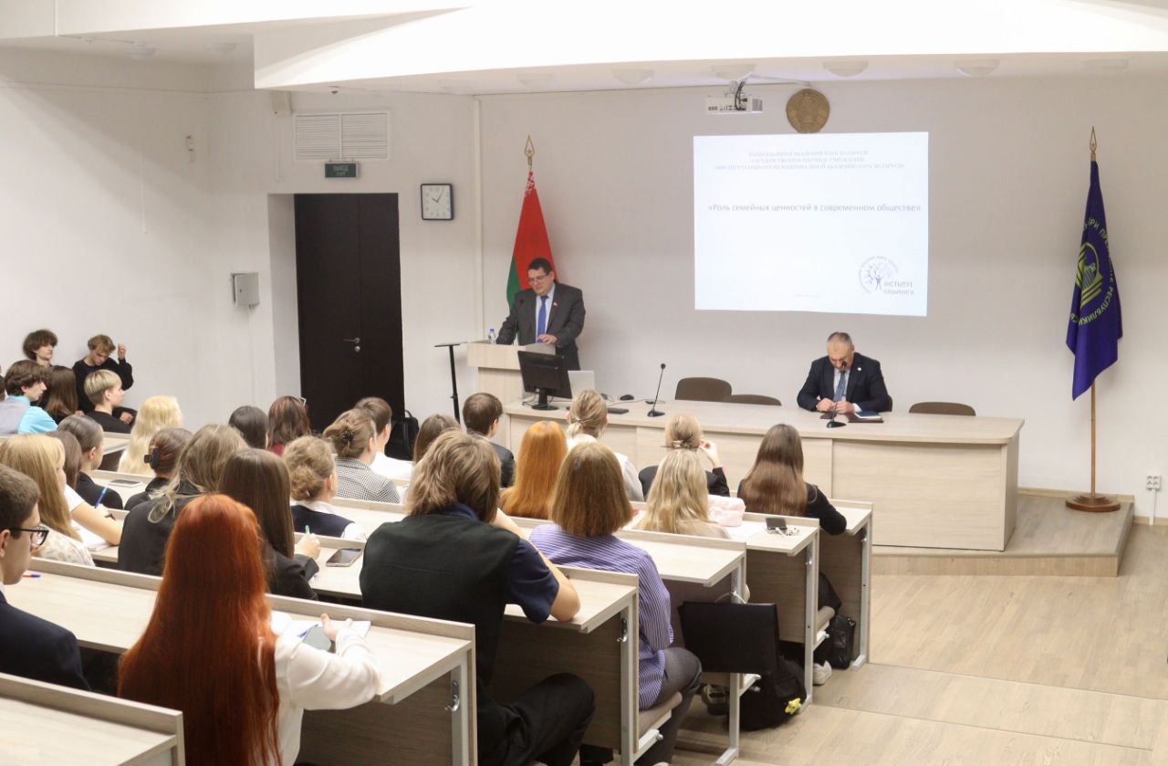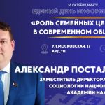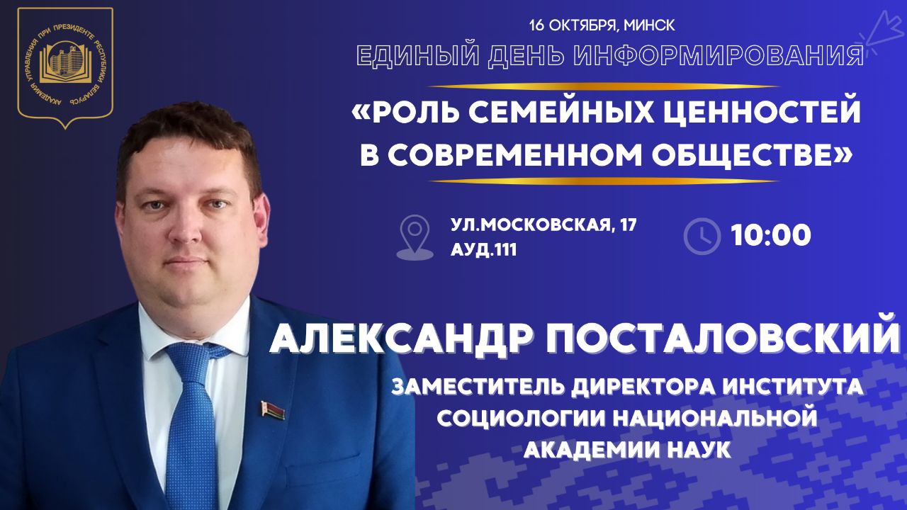 Заместитель директора Института социологии НАН Беларуси Александр Посталовский выступил на Едином дне информирования в Президентской Академии 16 октября, посвященном Неделе родительской любви, которая проходит в Беларуси.